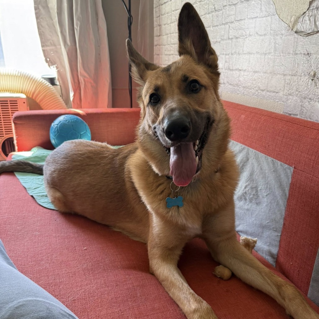 Yoshimi is a clever and handsome boy who's just a goofy, happy guy that thrives in a dog-savvy home. He loves his people and using his brain. Yoshimi enjoys mental enrichment like puzzles, toys, lickmats, and practicing his basic skills but also LOVES a good walk. He is so enthusiastic about meeting everyone he can come on a bit strong but with proper intros he makes fast friends. When he's in the right environment he's great at self entertaining, relaxing, and being a silly, loving puppy!! He truly is a wonderful dog who will thrive with an adopter who is ready for all the stages that being an adolescent brings!
