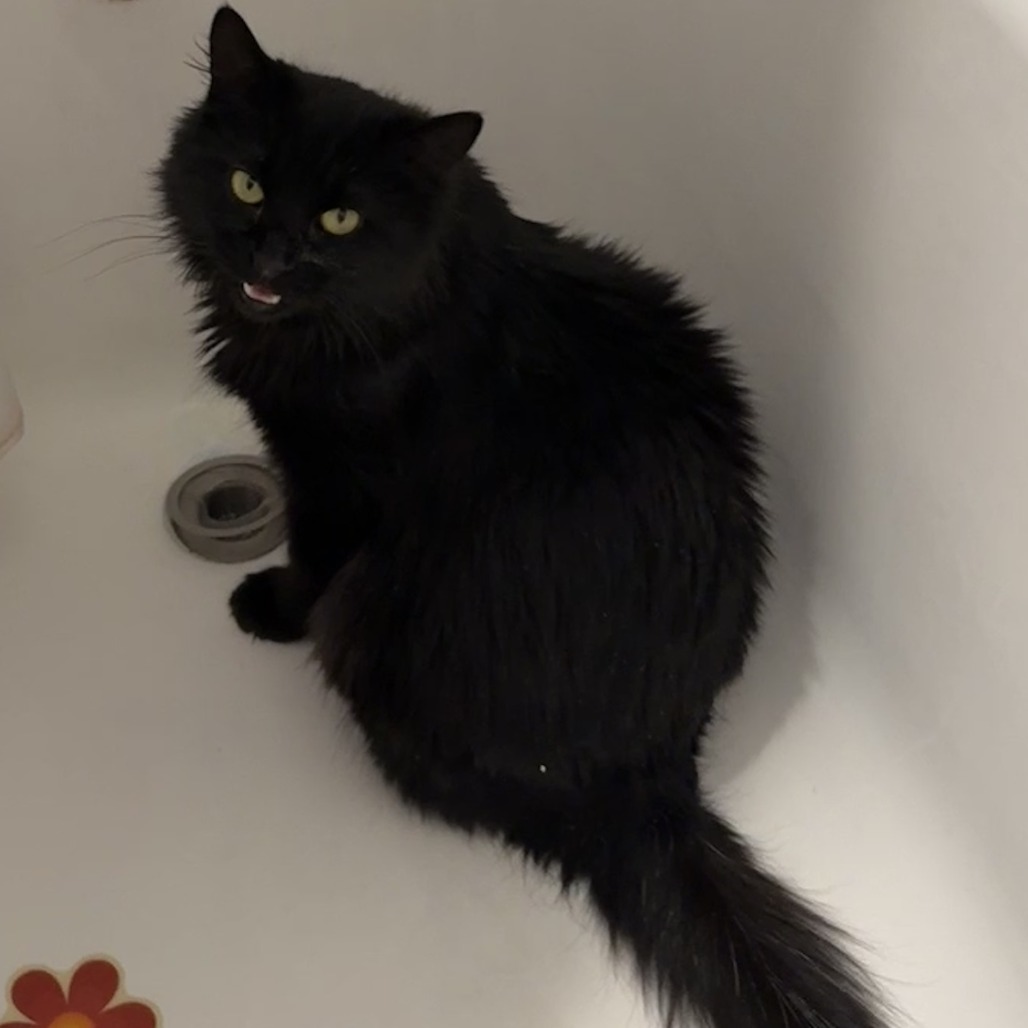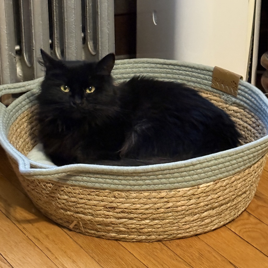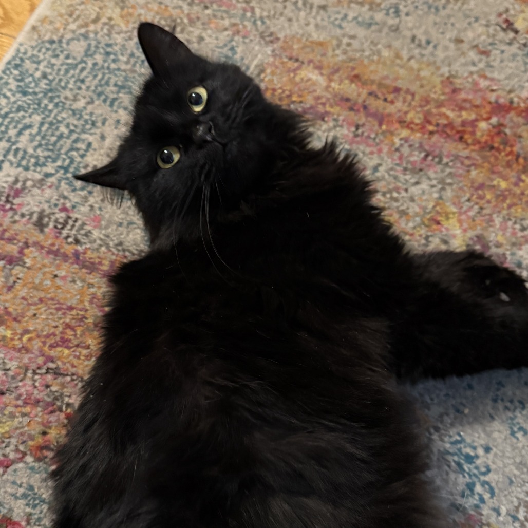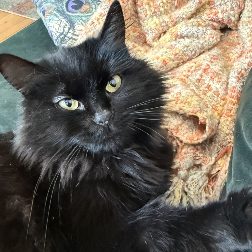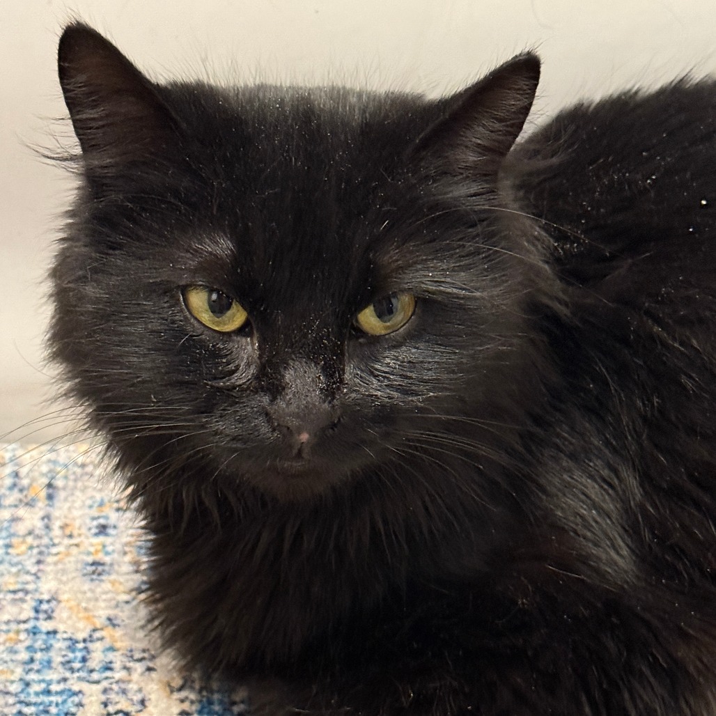 Bio: Everyone needs a little Miss Teri in their life! Miss Teri is dark and fluffy, sweet and sassy. She's a bit of a loner but if you go to her she will happily accept pets. She likes to explore, especially in closets. Give her a few treats and you can easily brush her soft coat. She has bursts of playfulness but is mostly a quiet, calm cat.