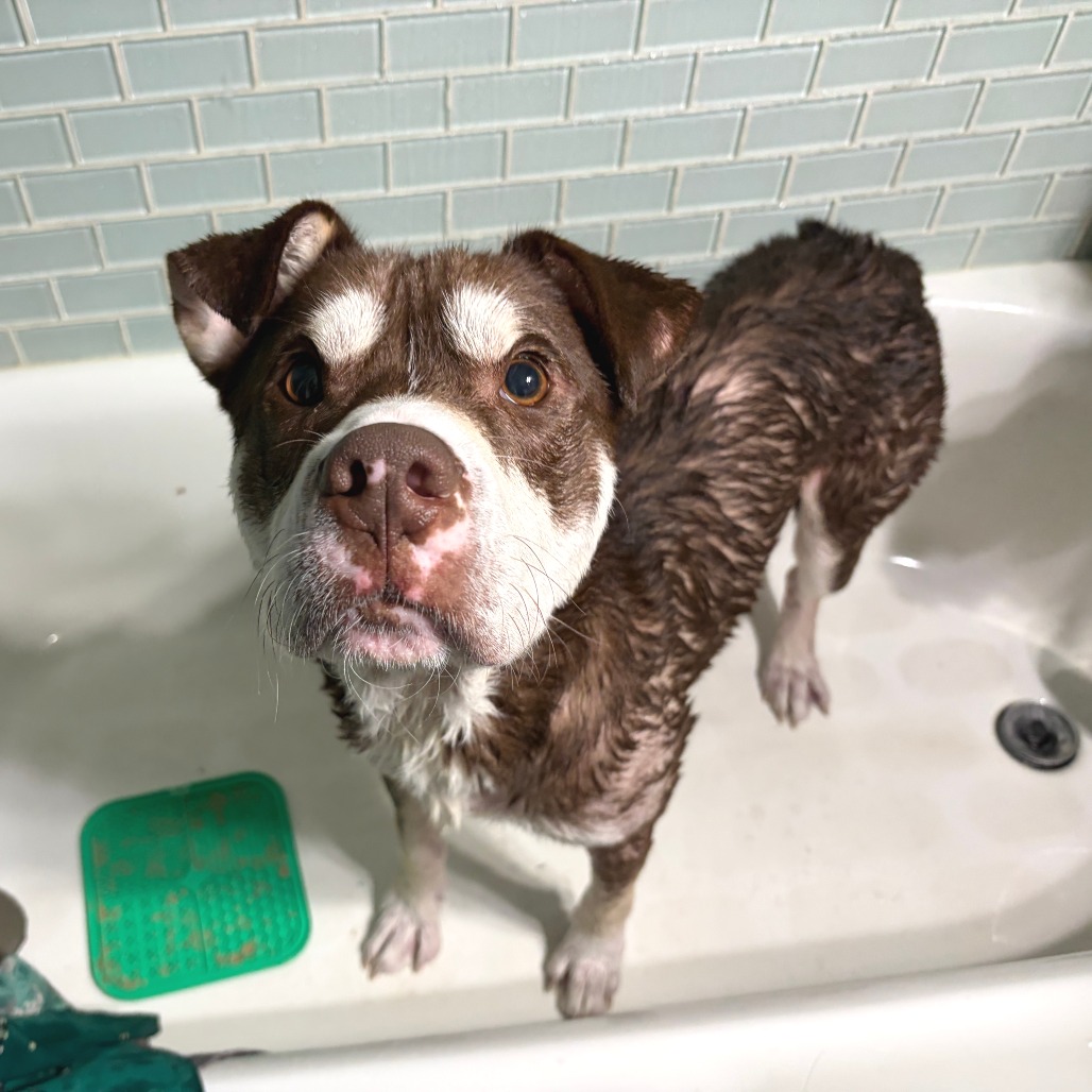 Equal parts goofball and sweetheart, Barnabus is weird in all the right ways. He loves other dogs, and everyone he meets. He isn't too high energy, loves to be wherever you are, and is very food motivated. He is super adaptable and seems beyond grateful for the love and care he's received. It has been an absolute delight to watch him show what a silly, curious, happy boy he is, ready to take on the world! He is going to be an amazing companion for someone!
