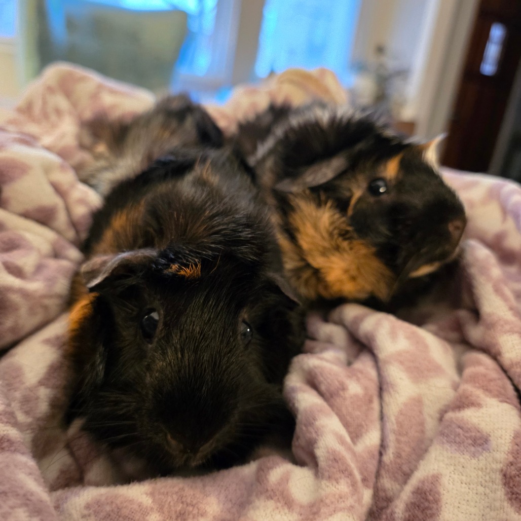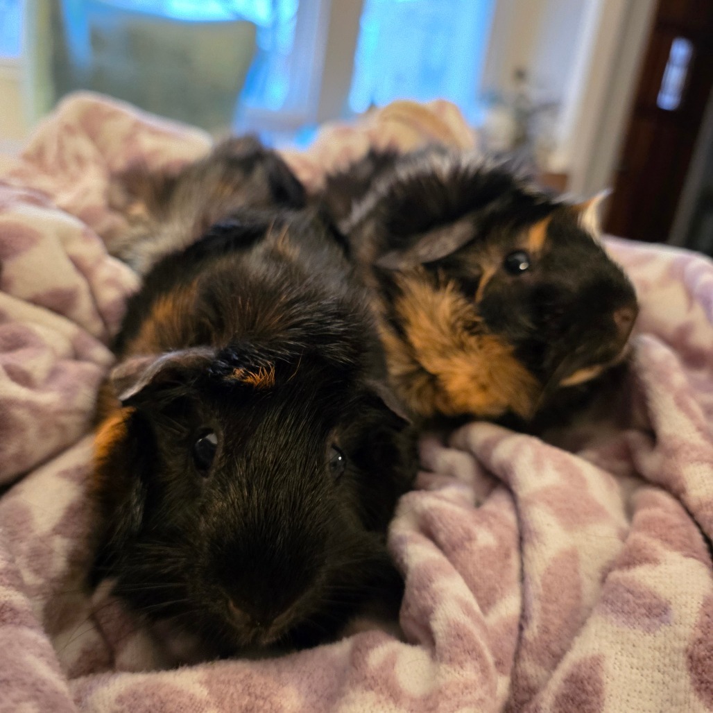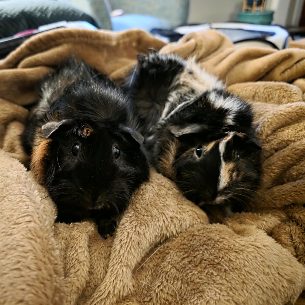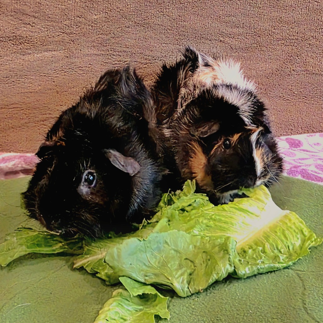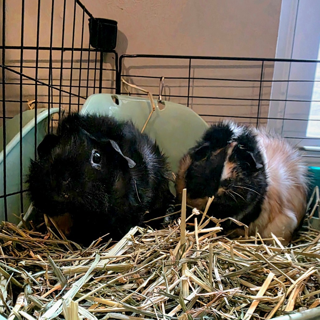 Together, they are inseparable- napping huddled together in a cozy dark den, darting away in perfect unison when startled, but ready to return for a delicious snack. When it’s mealtime, they scramble up and hop onto the pen wall side-by-side, eager to be first. They are shy at first, but their bond with each other is full of charm and just enough sass to keep things interesting.