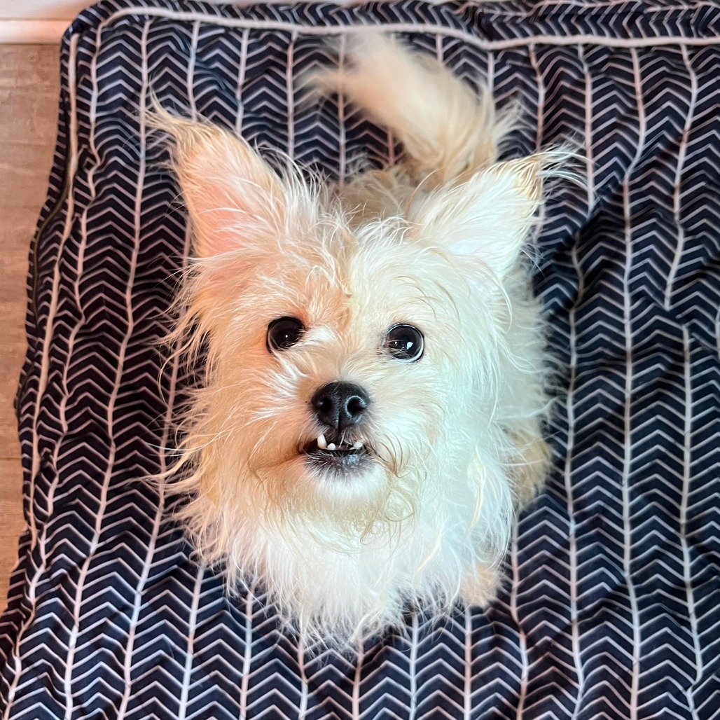 Agatha can be a little wary at first but with a little time and space, she'll quickly become your best friend! She loves to play, lean against you, get scritches, snuggle in a blanket, and accompany you with whatever task you'd like you accomplish. Her ears, underbite, and charming woof will make you smile everyday!